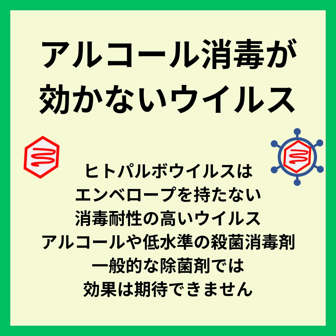このウイルスは、アルコール消毒では効果がないため、適切な対策が重要です。