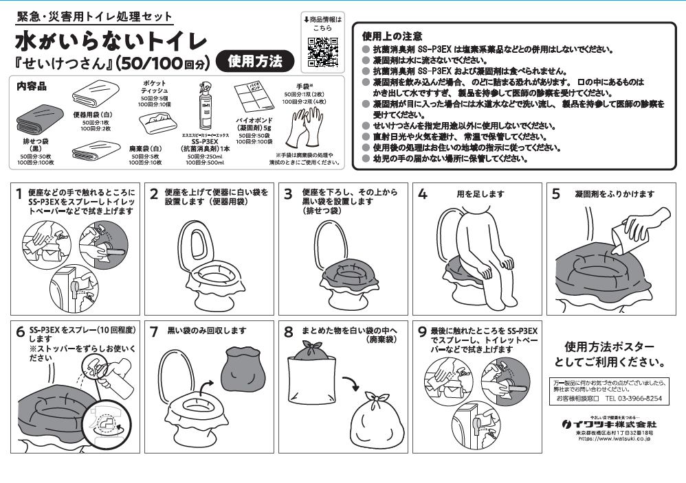 非常時にも安心の「ウイルス対応非常用トイレ 水がいらないトイレ せいけつさん100回分」は、急なトイレの必要に応じて、場所を選ばず簡単に使用できる画期的なアイテムです!